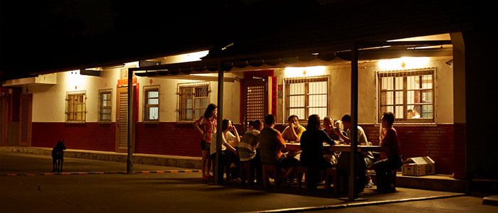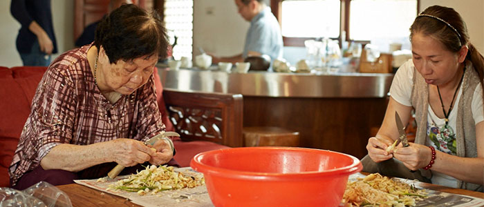 一家人並肩在三合院削鳳梨、熬鳳梨、烘焙鳳梨,